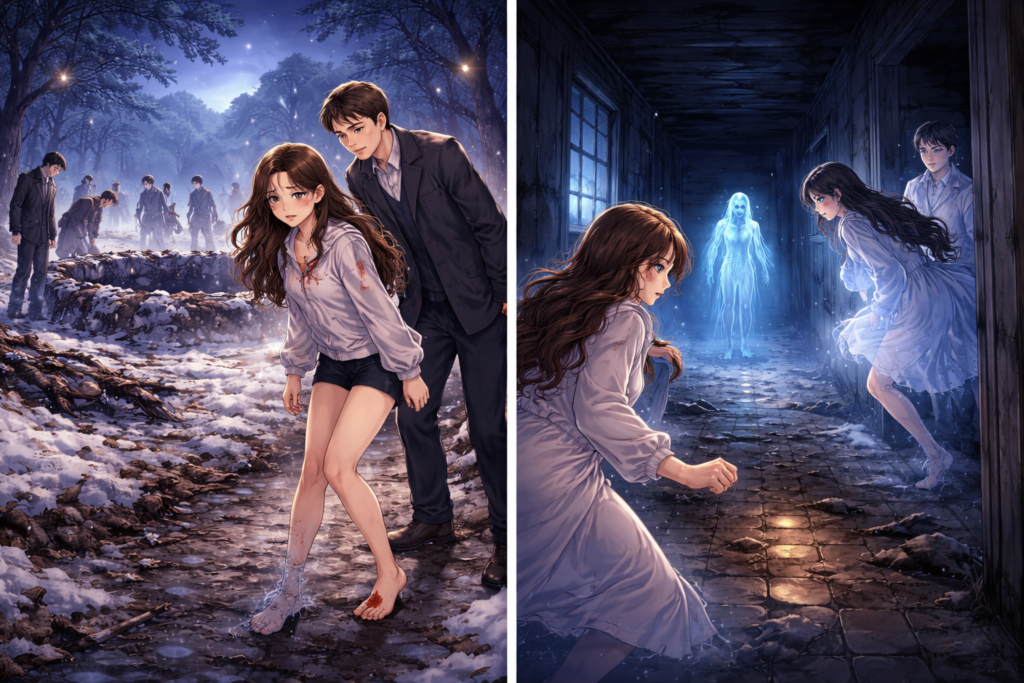 In the end, it was decided that a spirit lived on the site — an entity that altered reality and erased evidence. Both the teacher and I transformed into spirits ourselves. We hid on the second floor of a house, sitting at the end of a long corridor, waiting for this spirit to appear so we could attack it.